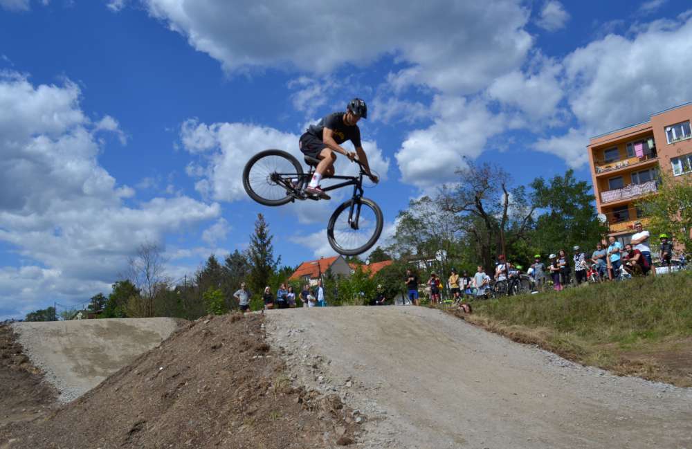 FOTO: V Dobříši vznikla nová pumptracková dráha. Otevření se zúčastnil i mistr republiky v downhill